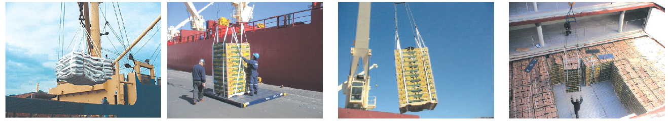Utilizadas para el manejo de carga pelletizada, como cajas de frutas, banano, legumbres, etc. Permitiendo al operario un rápido eslingado de la carga ya que la figura viene previa mente cocida.