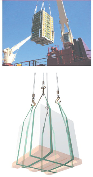 Este tipo de eslingas son muy utilizadas para el transporte y manejo de la carga en bultos como cemento, harina, sal, fertilizantes, etc. En sistema una vía. Se manufactura en polipropileno de alta resistencia (HTPP), que permite no solamente un excelente desempeño del producto en la operación, si no que es un material de fácil reciclado.