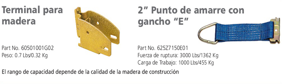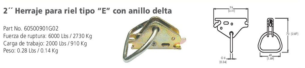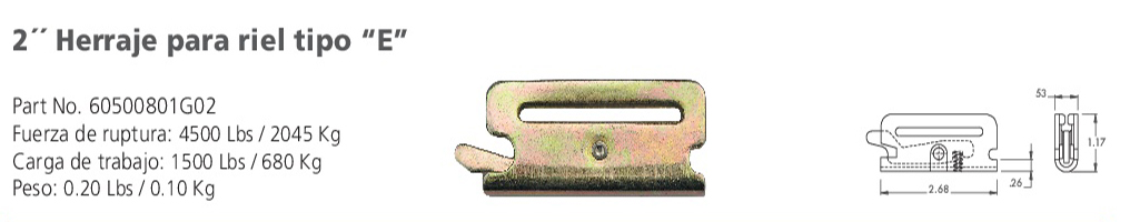Los herrajes para riel tipo «E» son un metodo eficiente y rapio para fijar carga en los interiores de los furgones.Los herrajes para riel tipo «E» de NT son fabricados para enganchar de forma segura nuestros rieles.